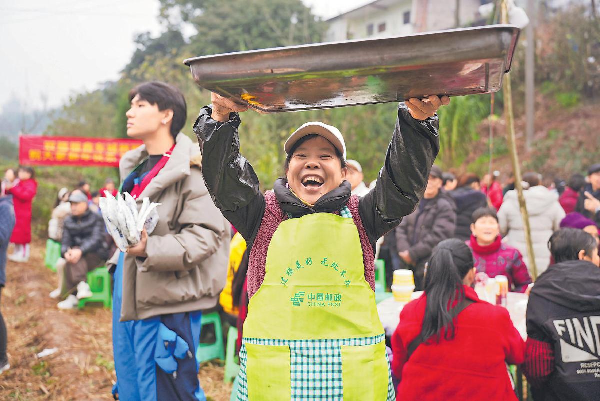 “歡樂不需要舞臺,歡樂就在田坎上!”正如一位網友所說,最熱鬧的還數田壩頭。江津區分公司支起的長條桌上,花椒、臘肉、米花糖擺得滿滿當當。從渝北趕來的李女士嘗了片米花糖:“對了,就是這個老味道?!彼S即掃碼,準備給在廣州工作的女兒寄去一份。